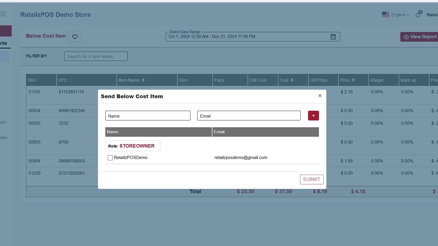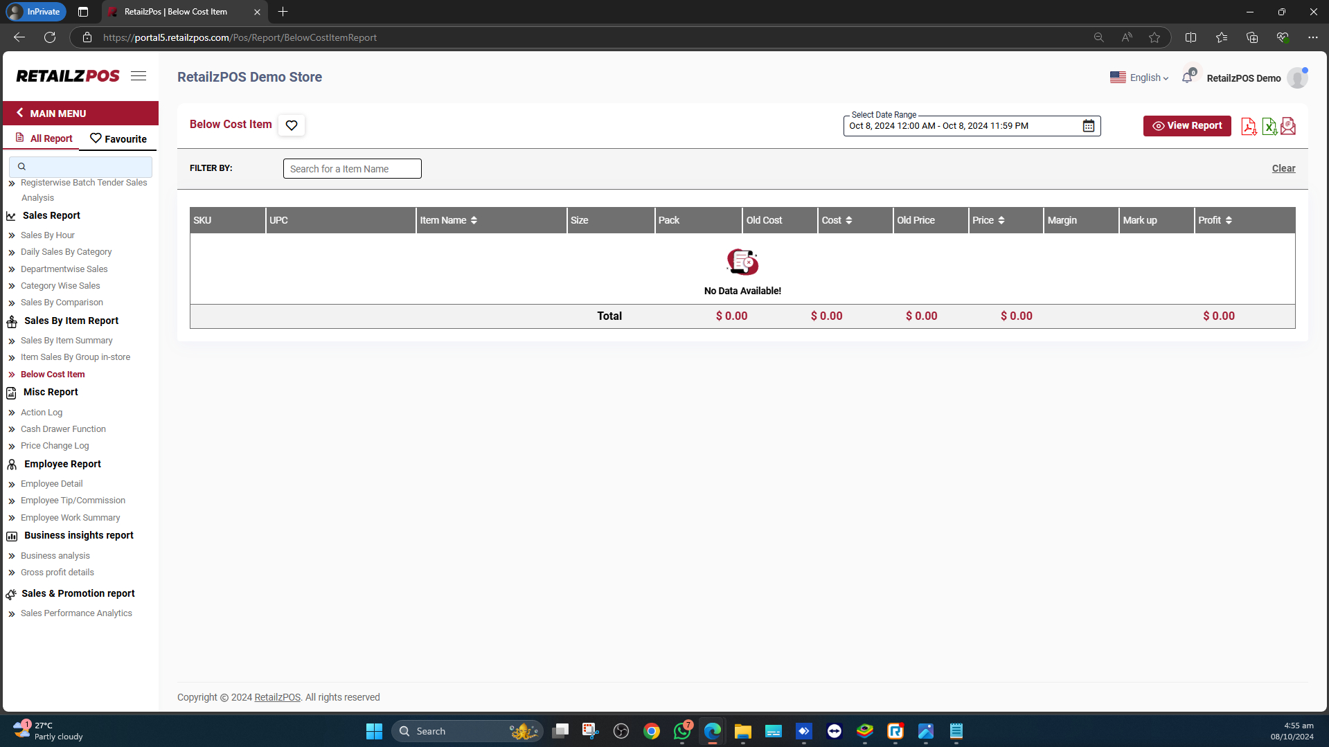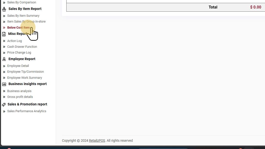 The Below Cost Item Report identifies items sold below their cost price, helping detect pricing issues and potential losses.