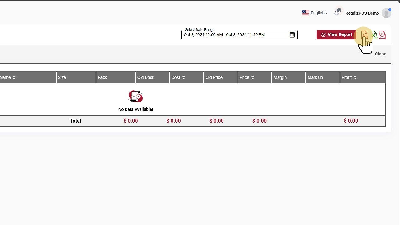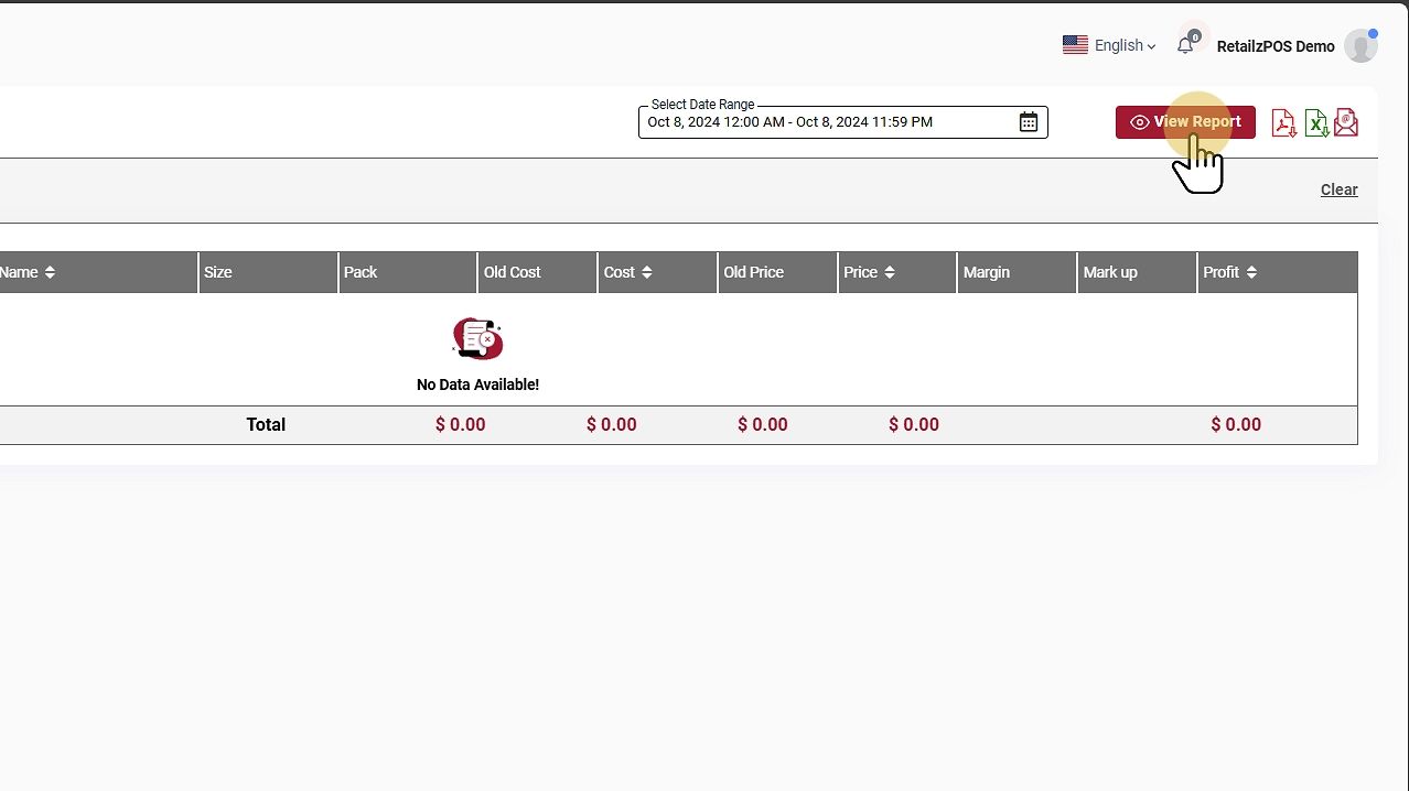 Filter the Date Range and Search an item to view a specific date range and a particular item.