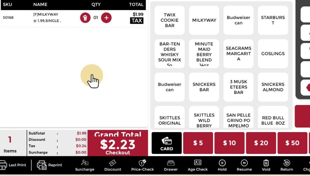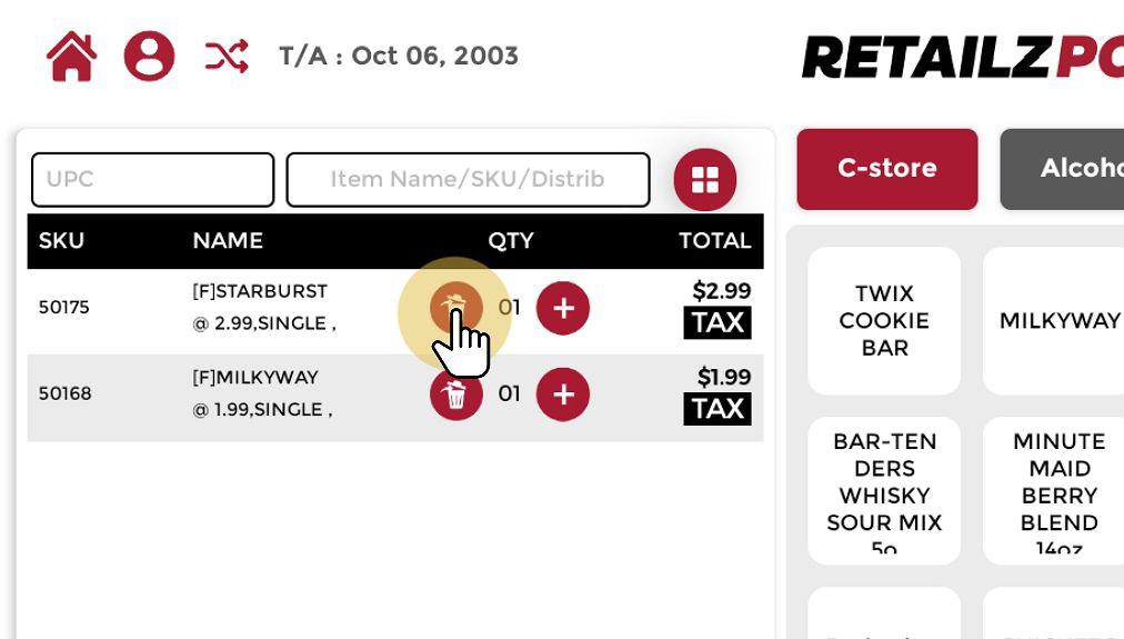 After adding the item to the transaction, click the Trash Can icon located beneath the item quantity in the transaction list to remove it.