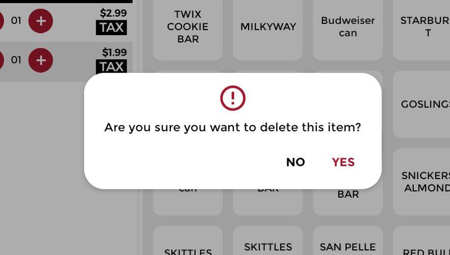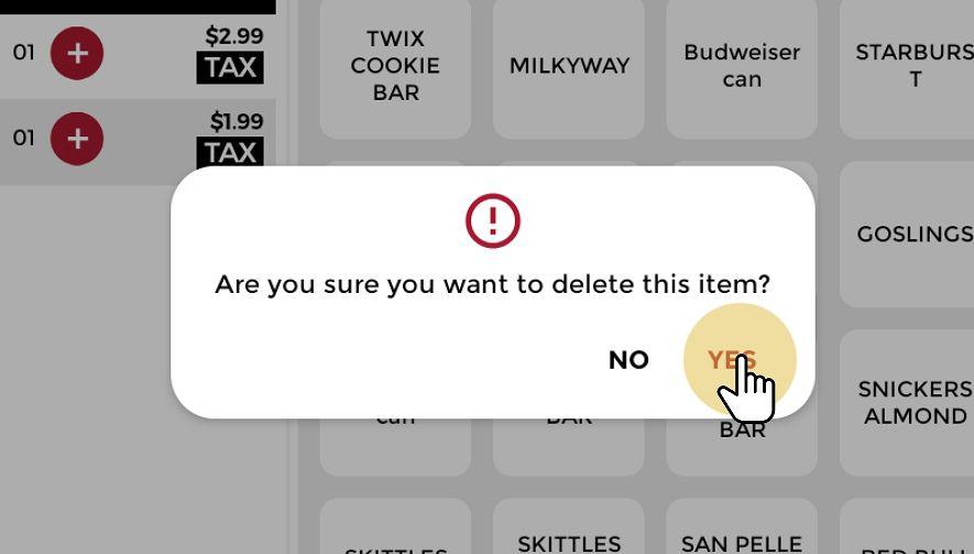 Select YES to delete the item from the transaction.