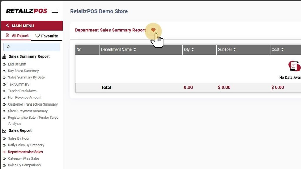The Department Sales Summary Report provides detailed insights into sales performance by department, allowing you to analyze which categories contribute most to your store’s revenue.