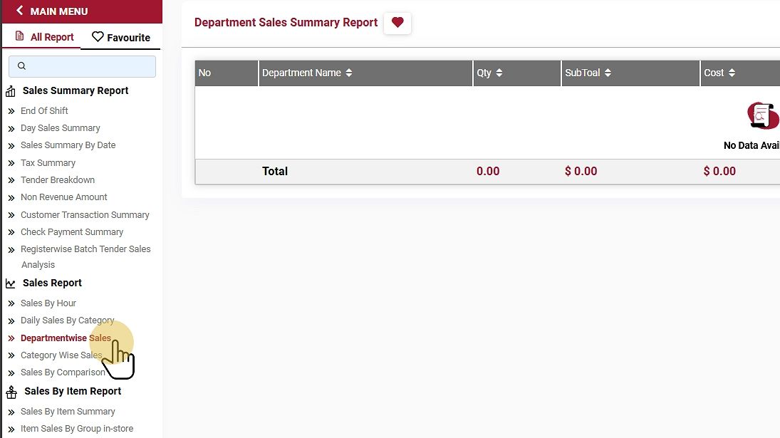 Select the Department Sales Summary under the Sales Summary Report section.