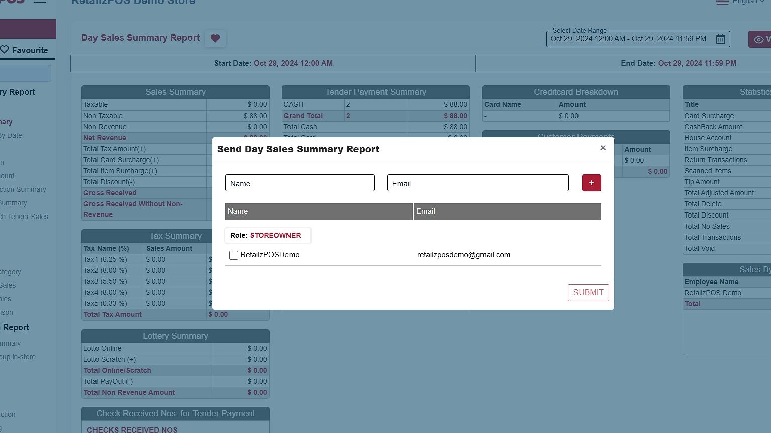 - Select Batch: View the sales summary for a specific batch created from the date of your report.