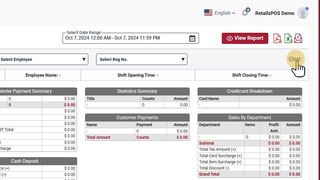 To refresh the report, click the clear button at the upper-right corner of the screen.