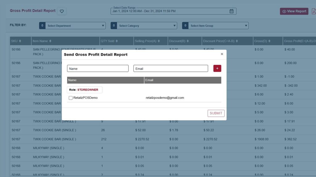 This report provides insights into gross profit margins by product, helping assess profitability and financial health.