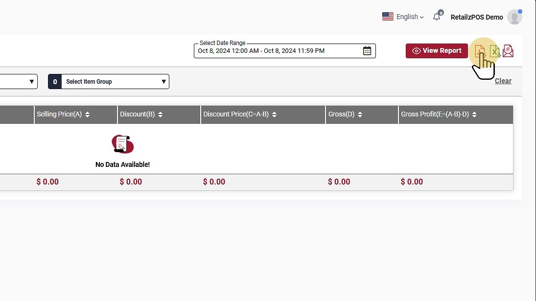 To refresh the report, click the clear button at the upper-right corner of the screen