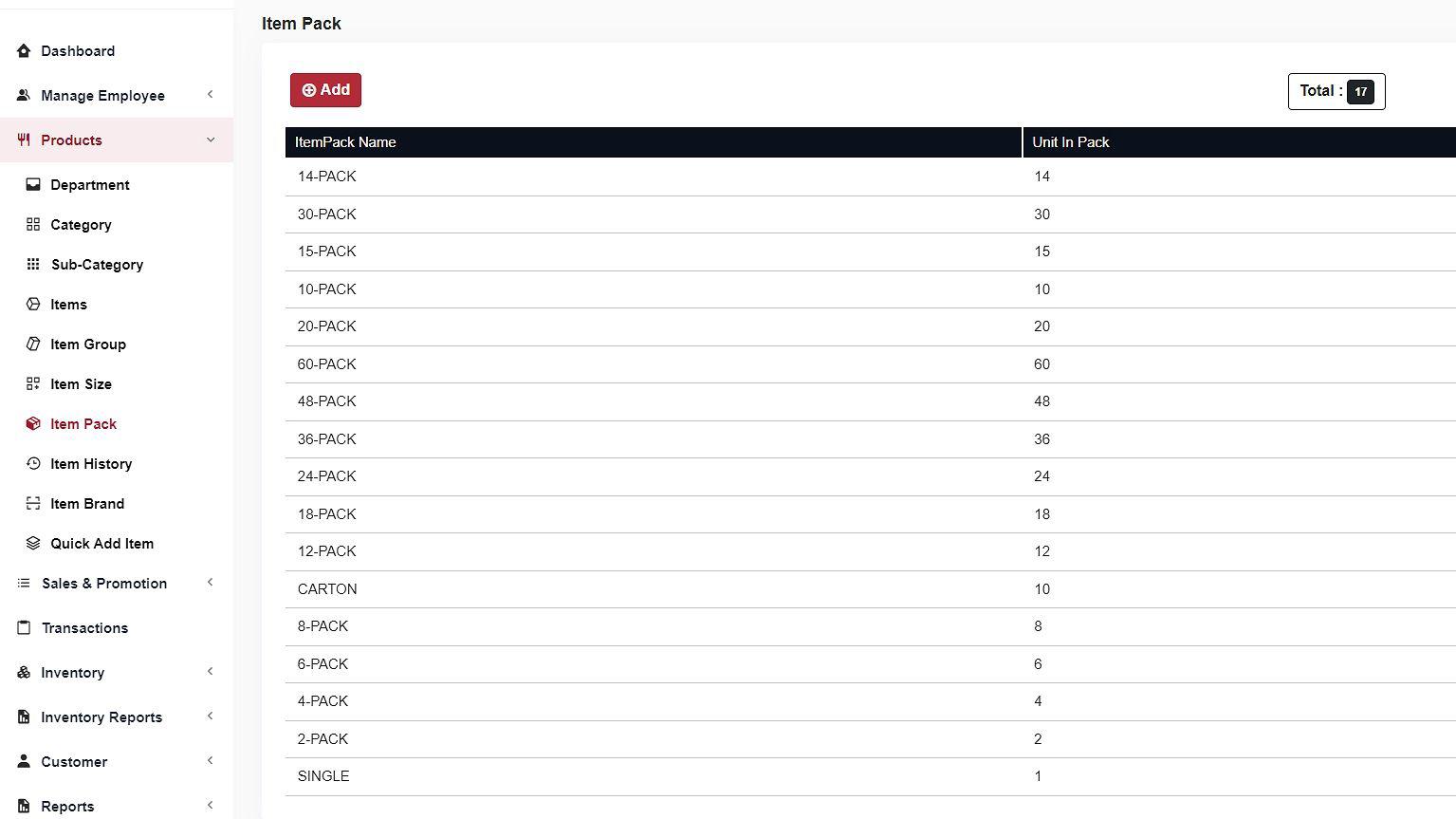 Item Pack is where you can create specific packs that can be used for your products/item pack organization in the database.