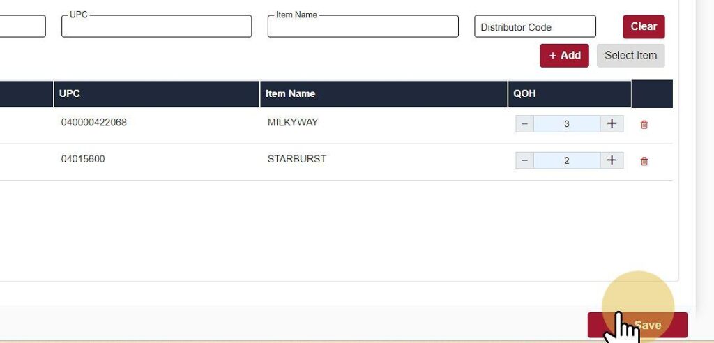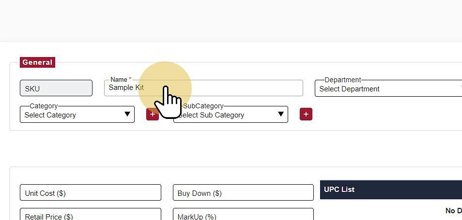 To add items to the Kit, begin by inputting the product UPC, SKU, Name, or Distributor Code.
