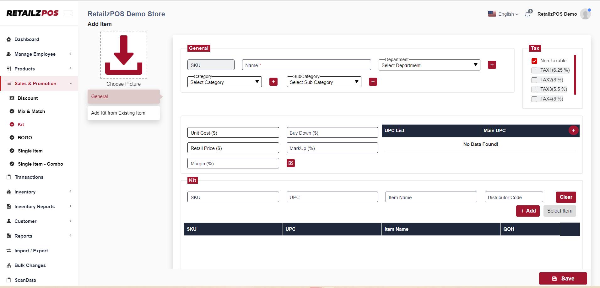 Note: Kits are a great way to help push unsold products out of your store. By using the zero movement report in the reports menu you can easily identify items that do not have sales history and it will be recommended to add those items to a kit bundle to effectively remove them from your inventory.