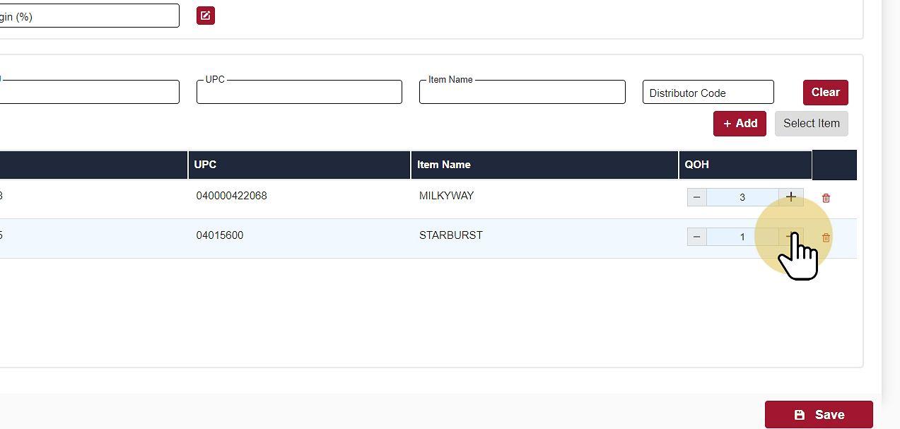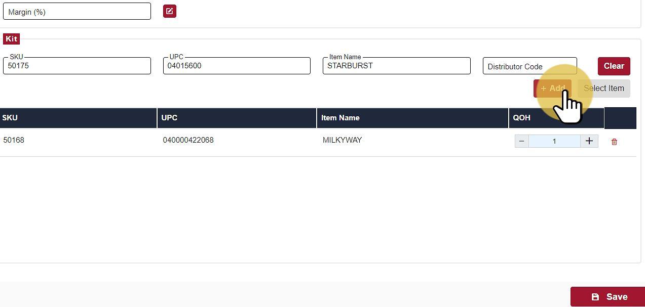 To add items to the Kit, begin by inputting the product UPC, SKU, Name, or Distributor Code.