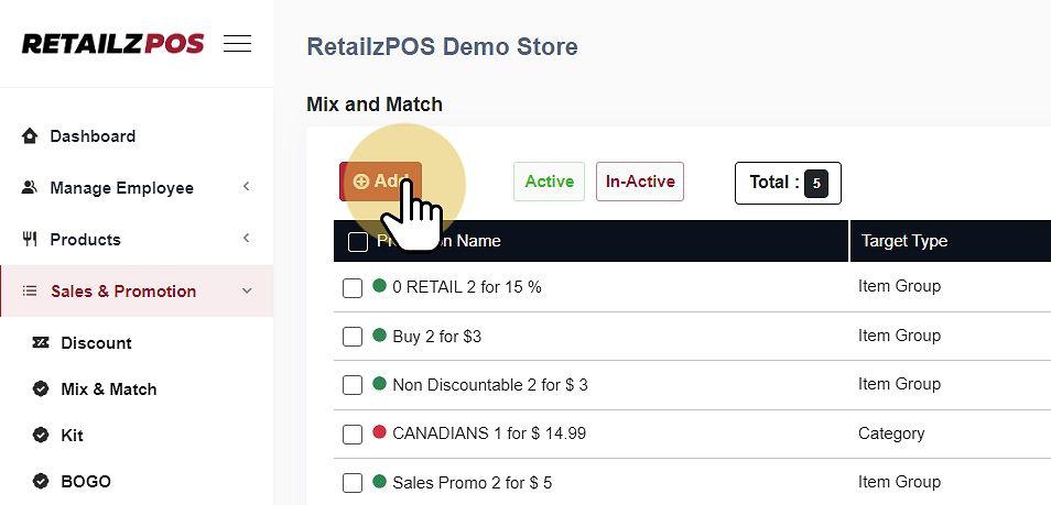 Select Add to create a new Mix & Match Promotion.