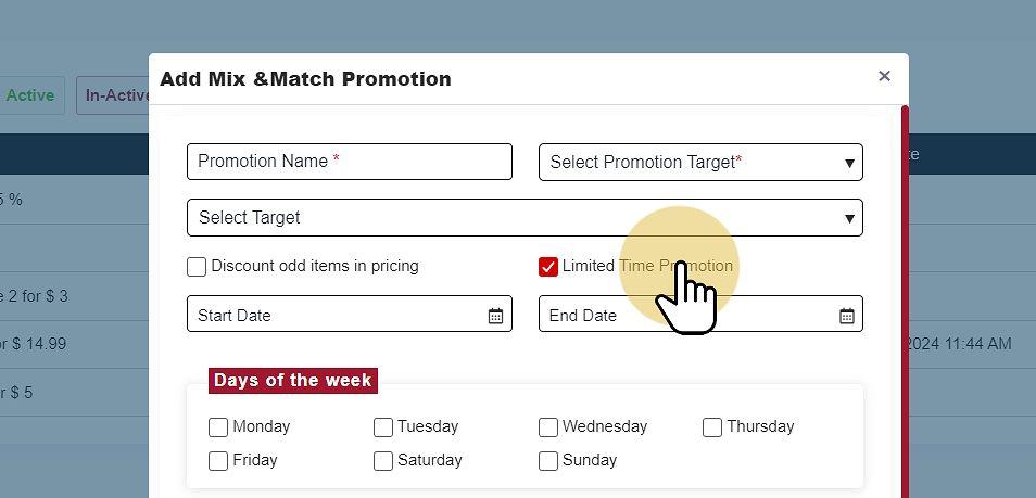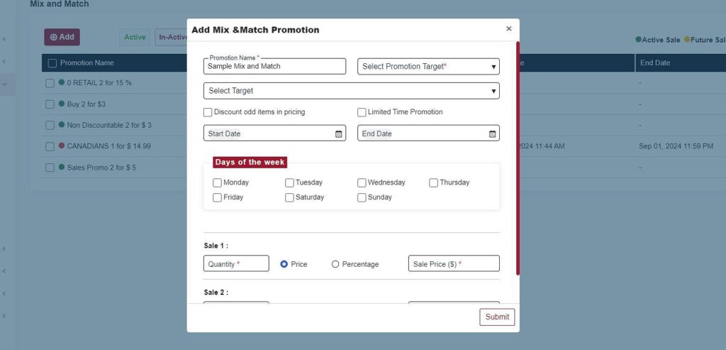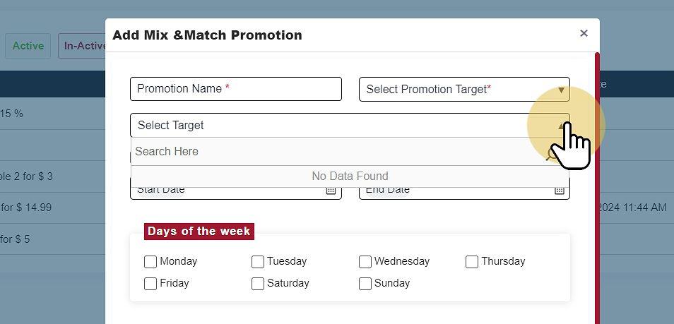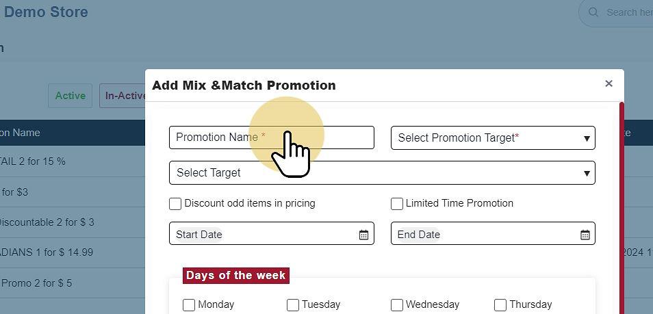 When creating a new Mix & Match Promotion, you must input the following information
