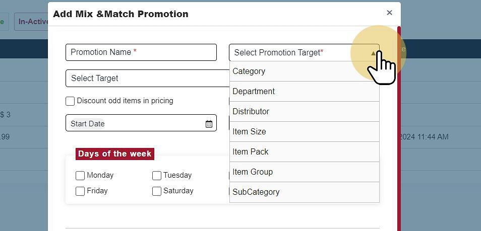 Promotion Target (Department, Category, Subcategory, Item Size, Item Pack, Item Group)