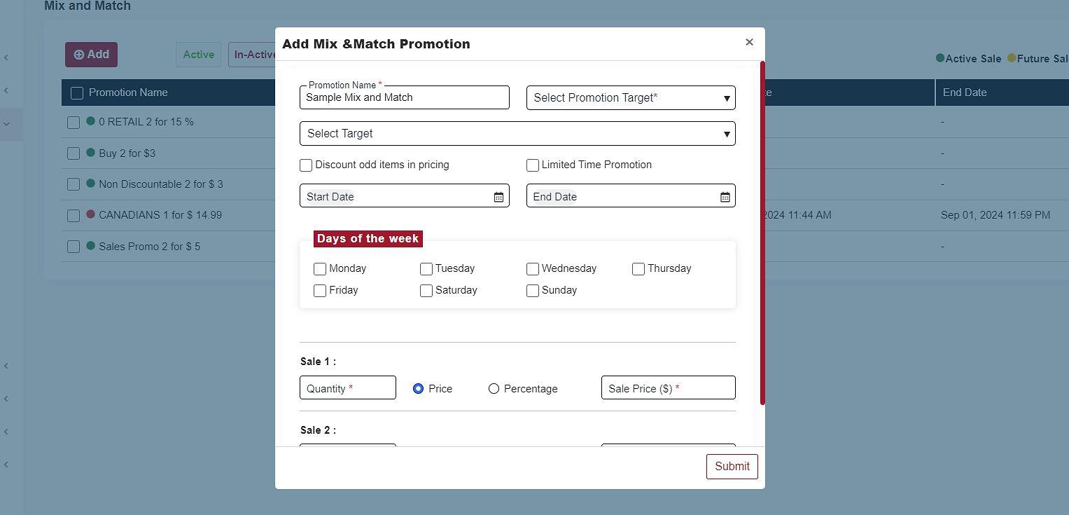 When creating a new Mix & Match Promotion, you must input the following information