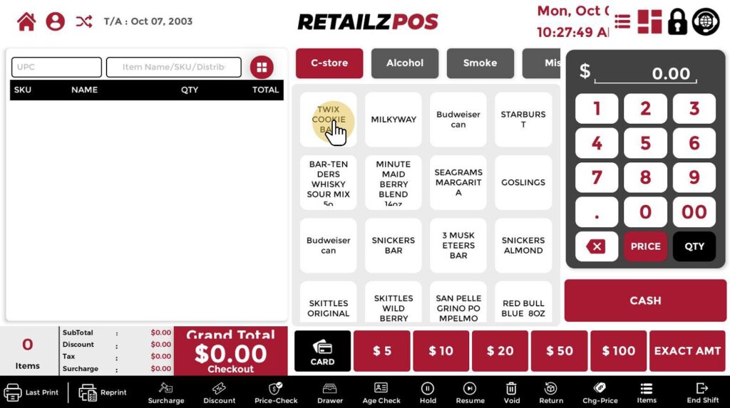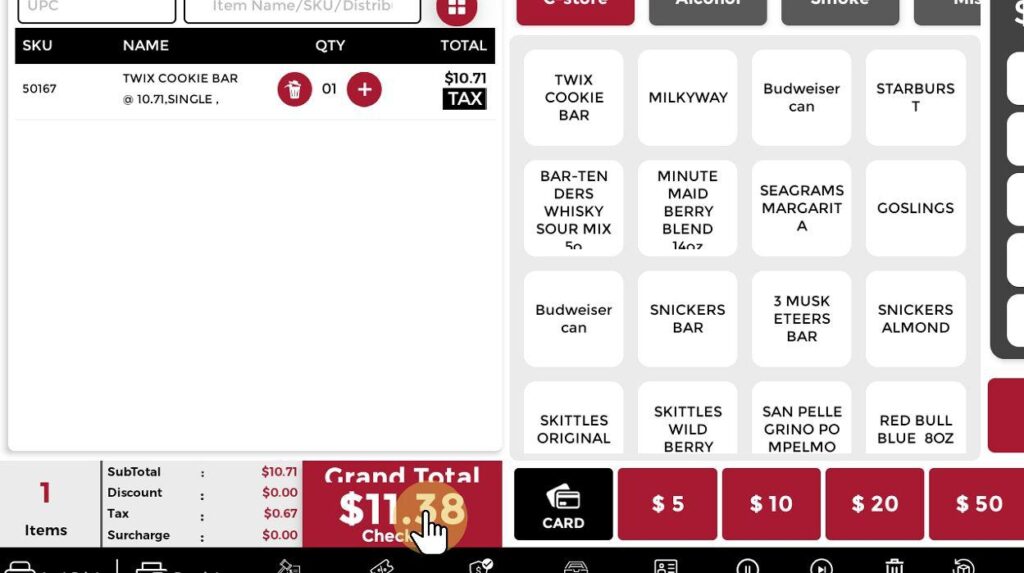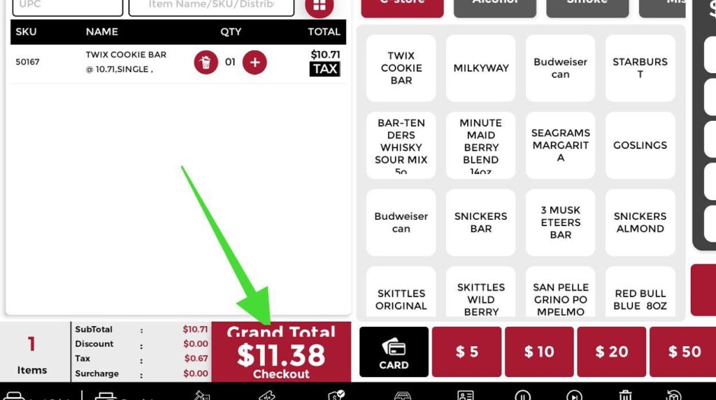 Once items are added to the transaction log, the Grand Total will display the total amount due after all selected items have been rung up.