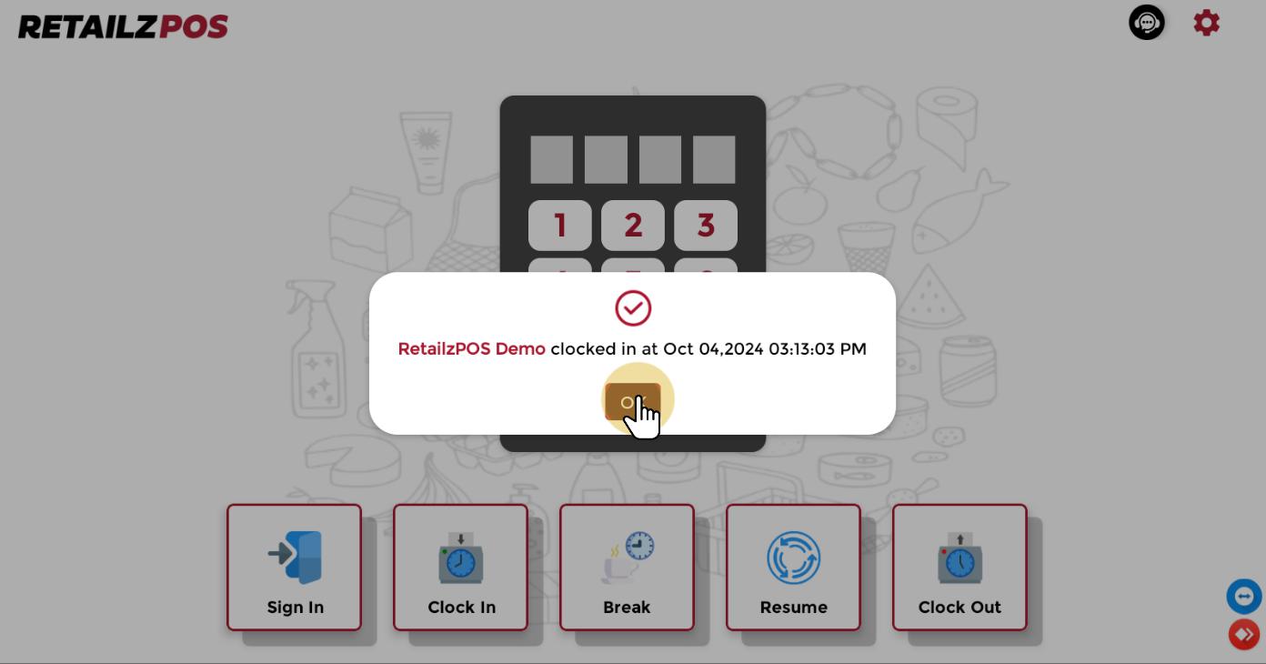 Note: If an employee is not clocked in and you try to clock out, a popup will say “Please Clock In First.”