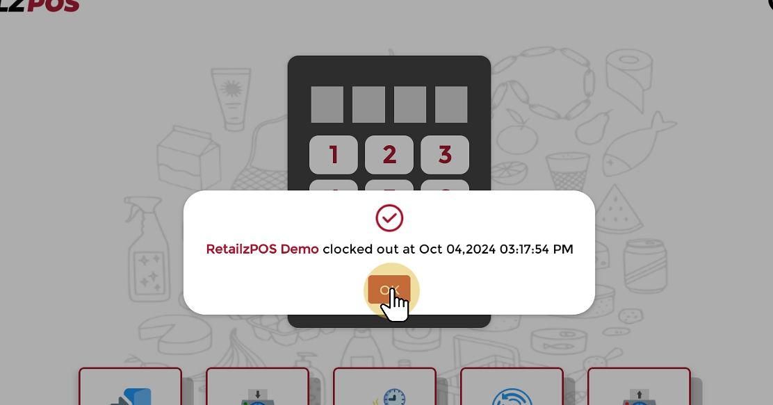 A popup will appear showing information about the Employee Name, Clock Out Date, and Clock Out Time.