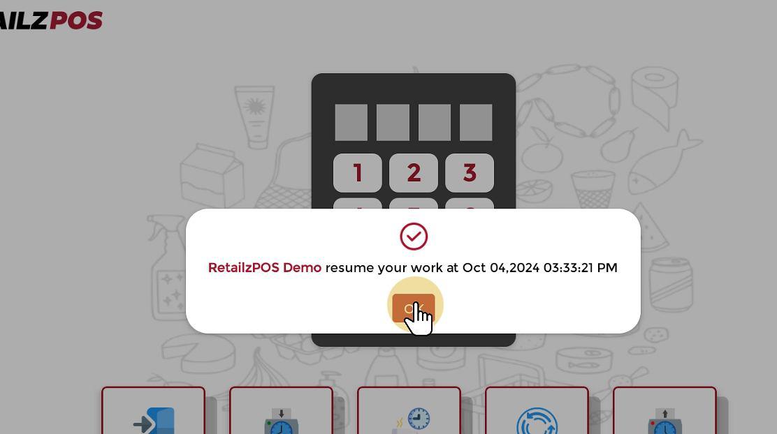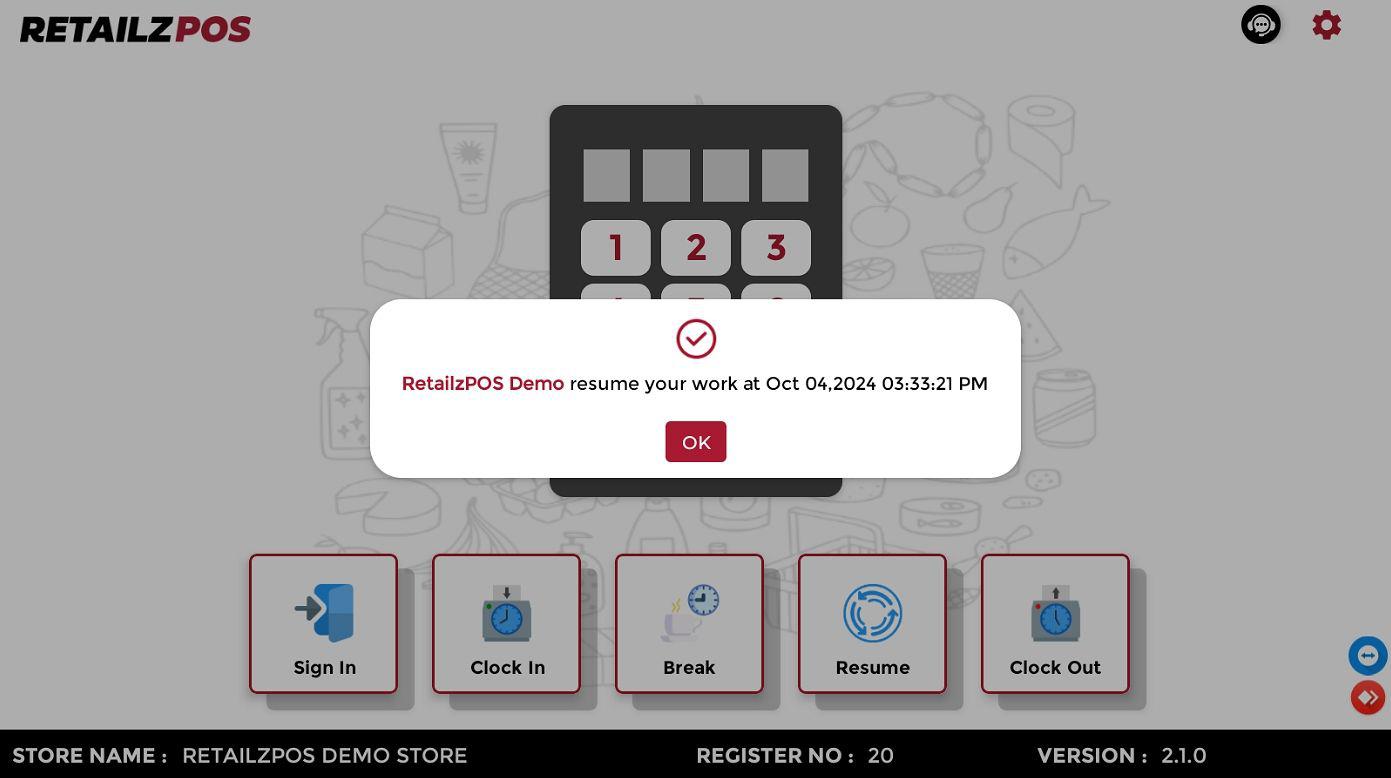 A popup will appear showing information about the Employee Name, Resume In Date, and Resume In Time.