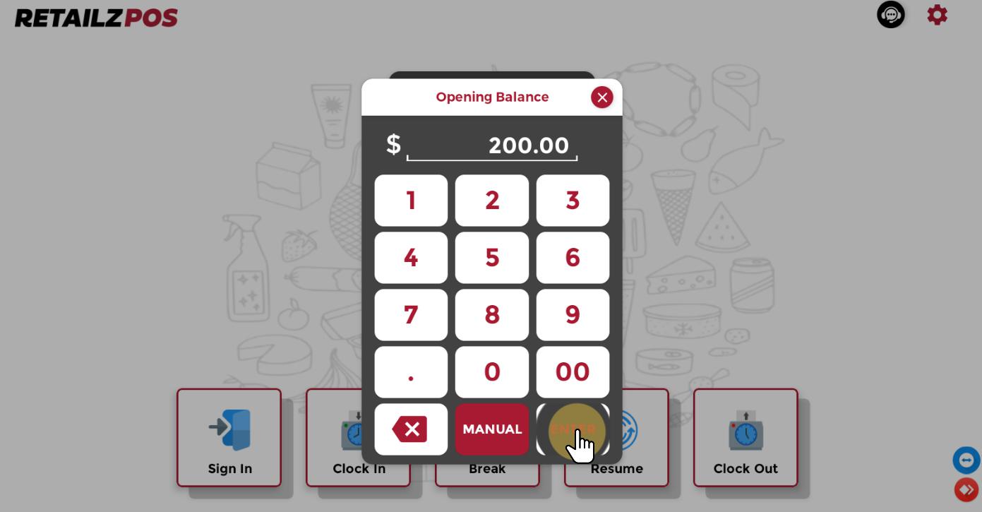 A popup will appear asking you to enter your new shift’s Opening Cash Drawer Balance.