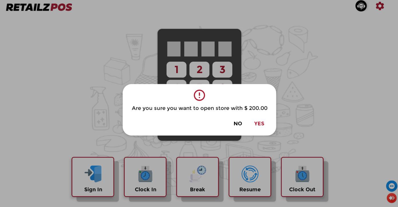 A popup will appear asking to confirm your Opening Cash Drawer Balance.