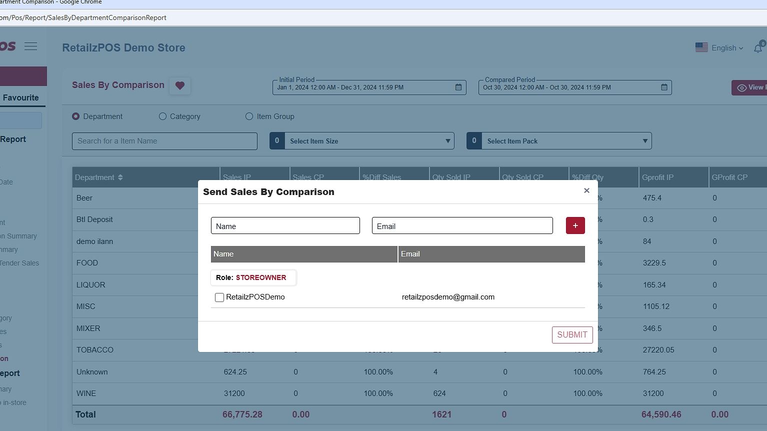 The Sales By Comparison Report allows you to compare sales performance over different time periods to analyze trends and make data-driven decisions.