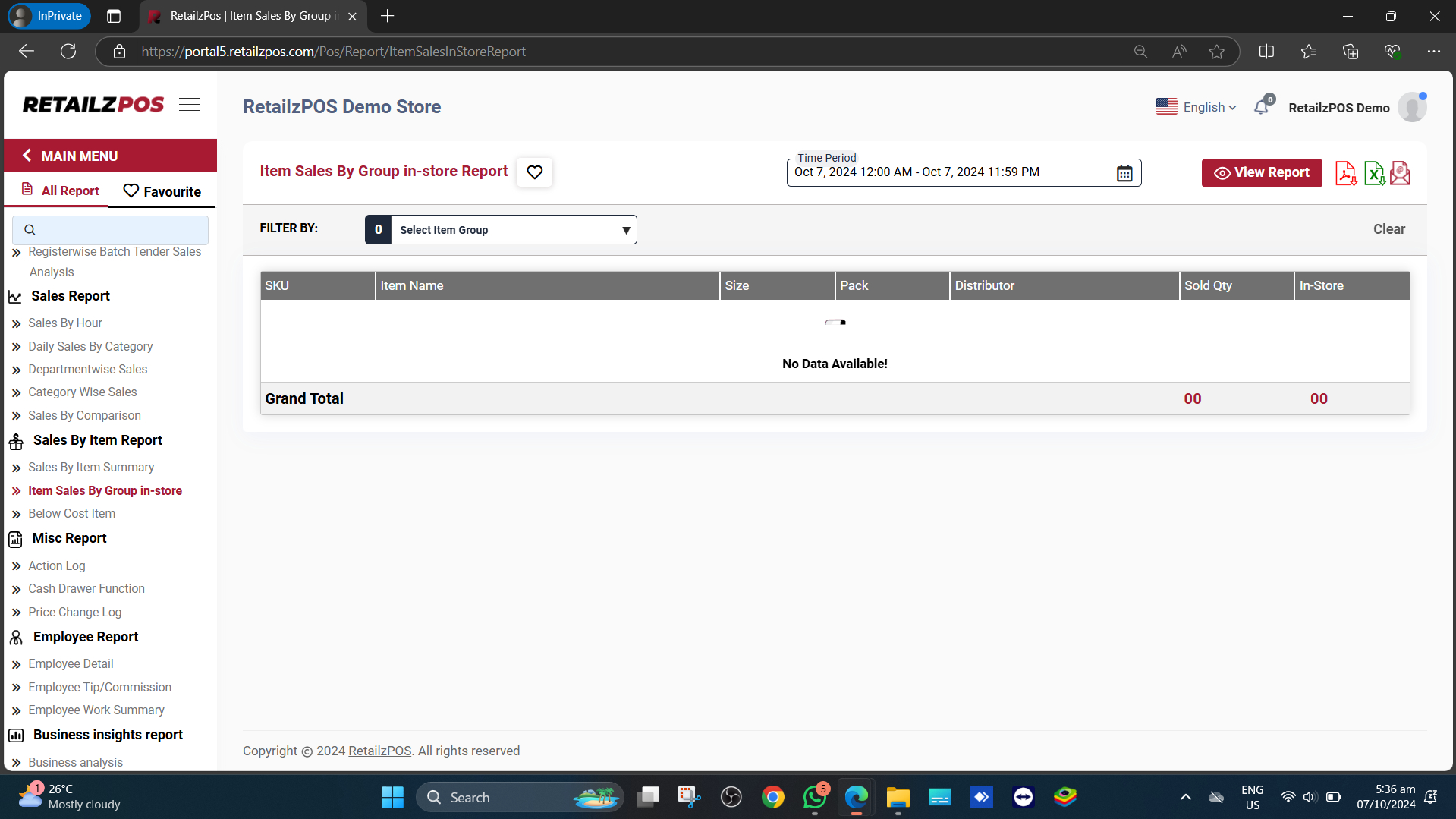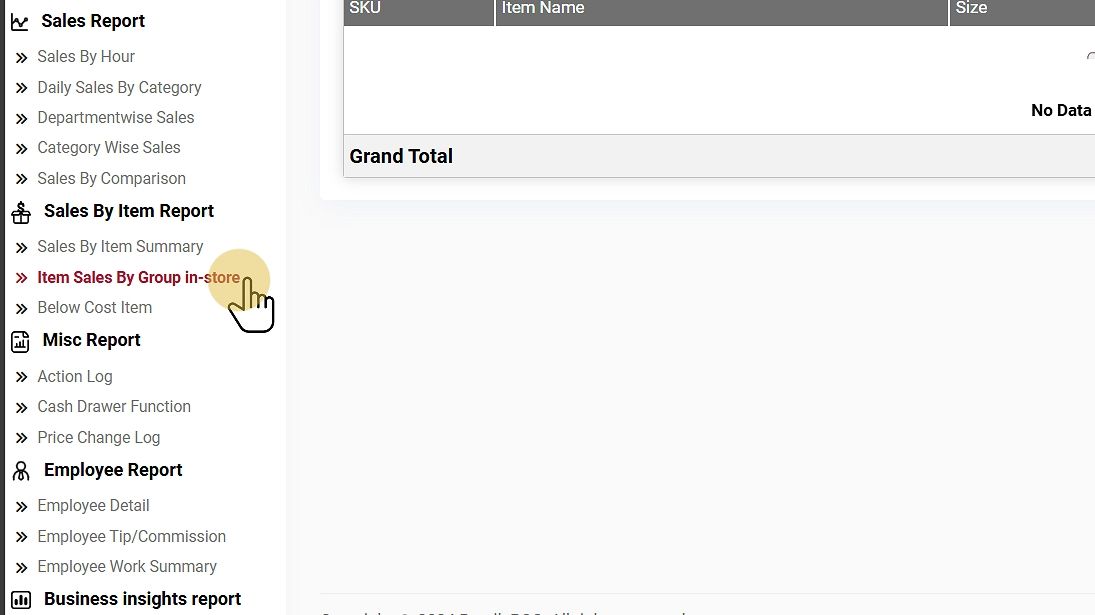 The Sales By Group In-Store report provides insights into sales performance based on specific groups within the store. It allows you to analyze which groups contribute most to your overall sales. It will show information like: