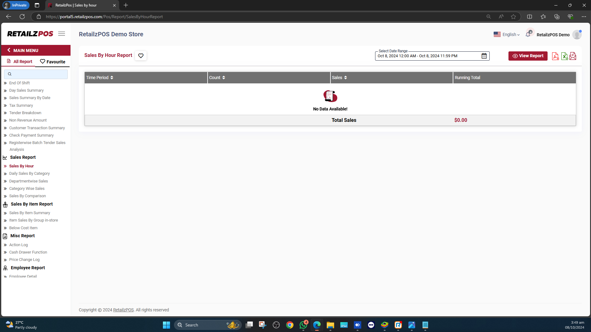 The Sales By Hour Report displays sales performance by each hour of the day, providing insights into peak sales times and helping optimize staffing and operations.