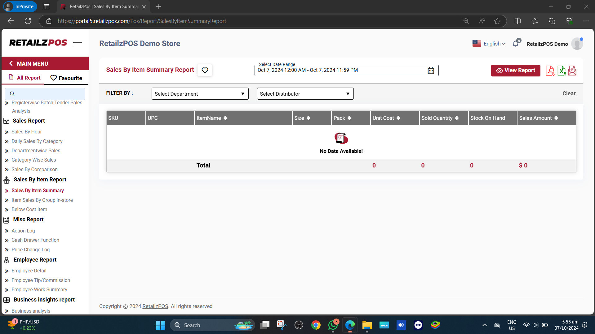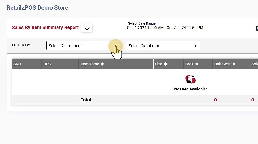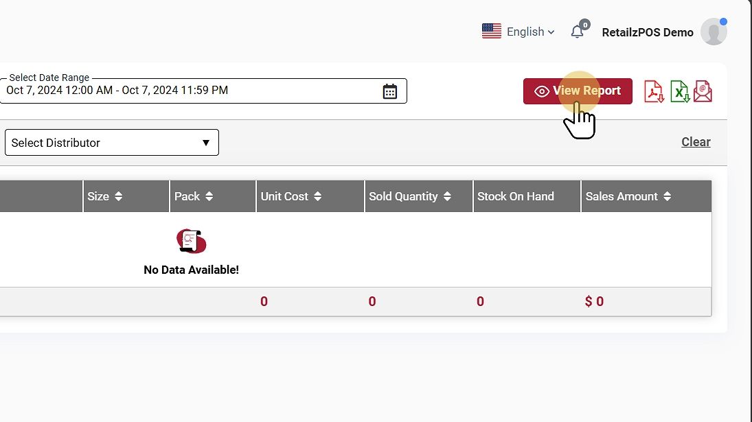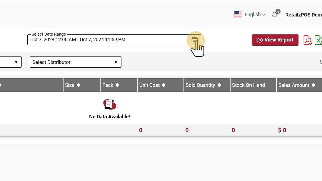 Filter the Select Distributor to view the sales of the items that belong to a specific distributor of your store.