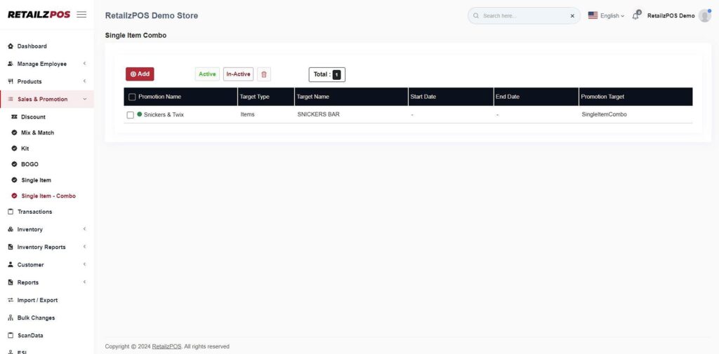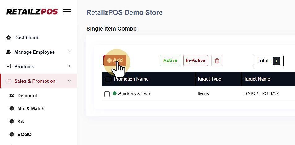 Select Save to apply the Single Item – Combo Promotion.