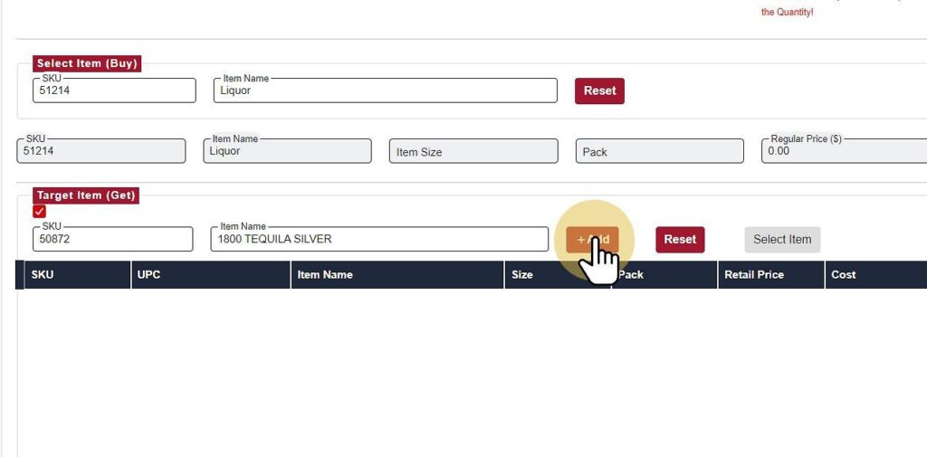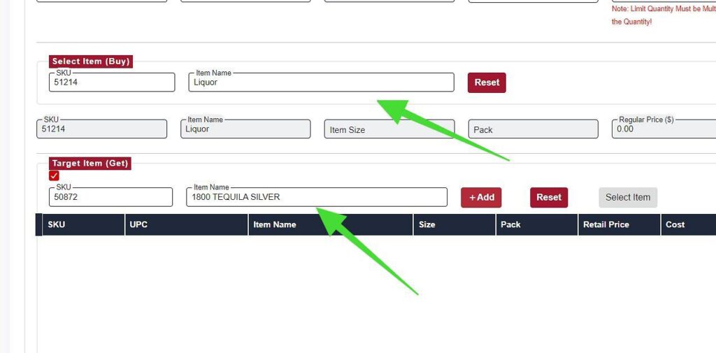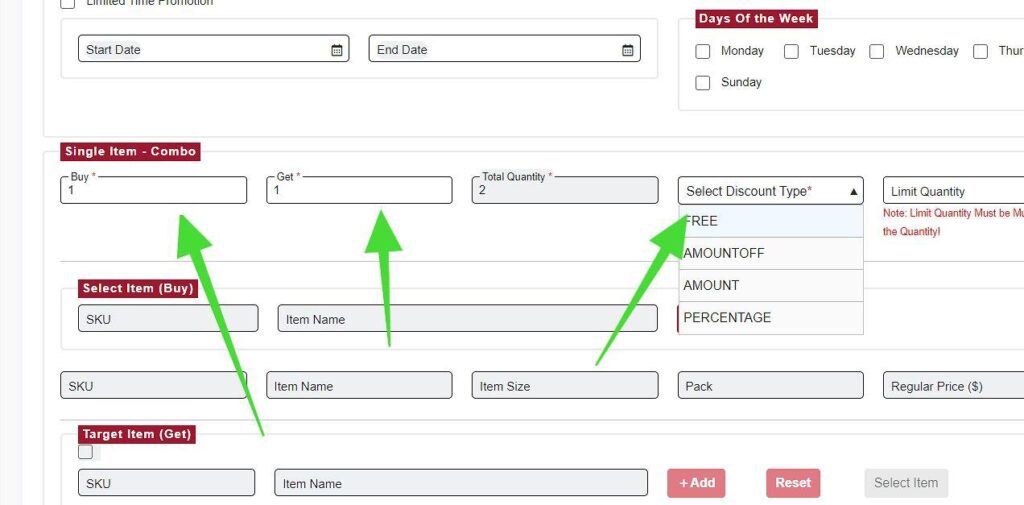 - At the bottom half, input the item you wish to combo with the Single Item – Combo Promotion.