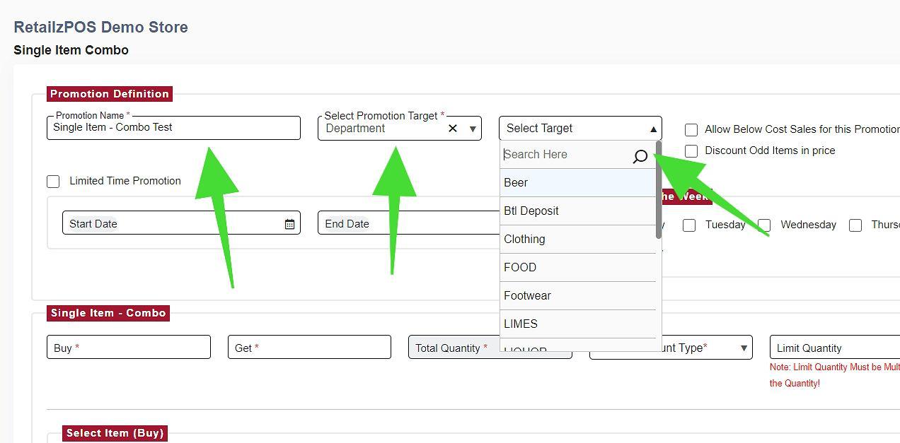 - At the bottom half, input the item you wish to combo with the Single Item – Combo Promotion.