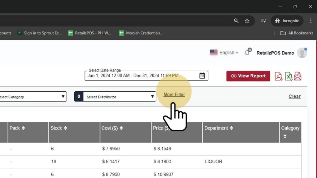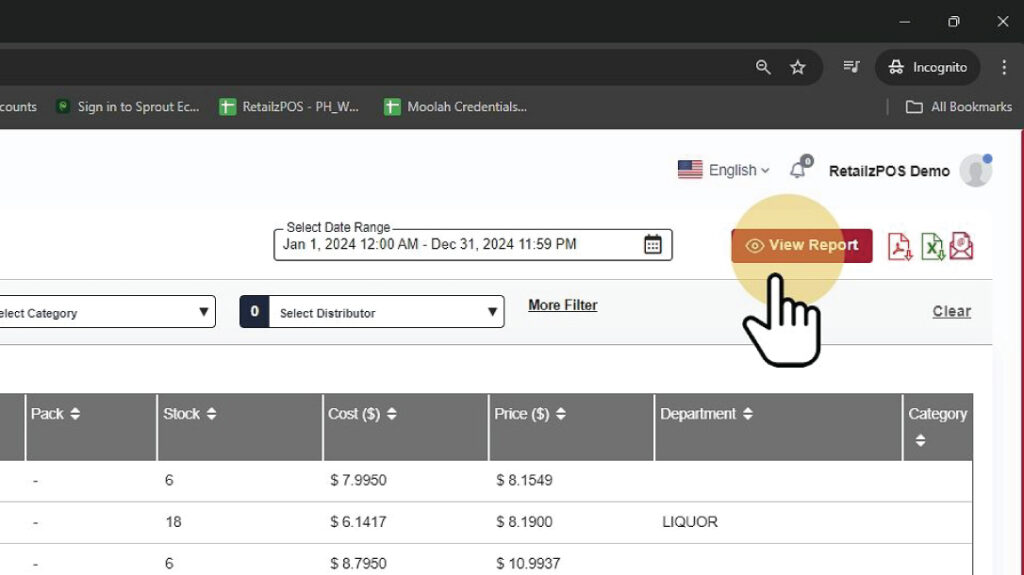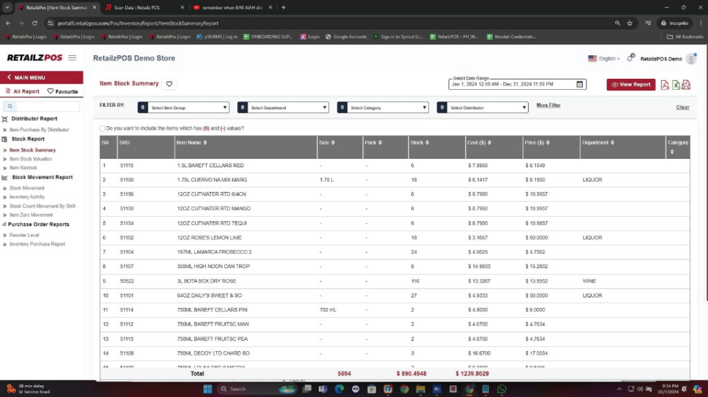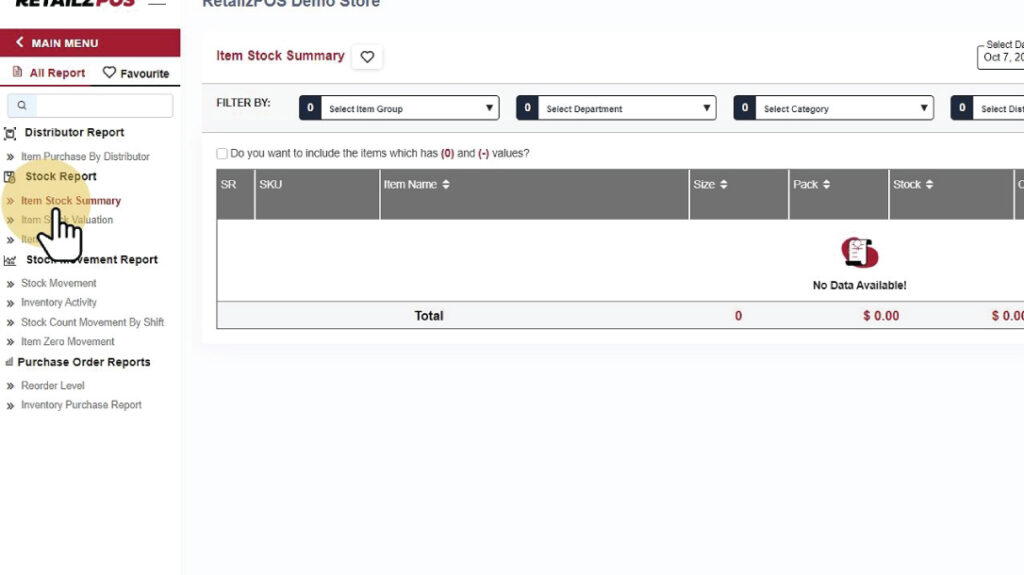 Item Stock Summary Report will show you information regarding the current stock you have on the current day