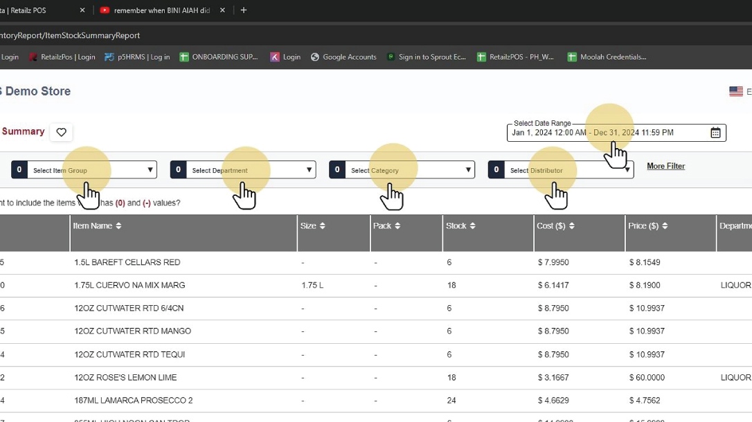 Item Stock Summary Report will show you information regarding the current stock you have on the current day