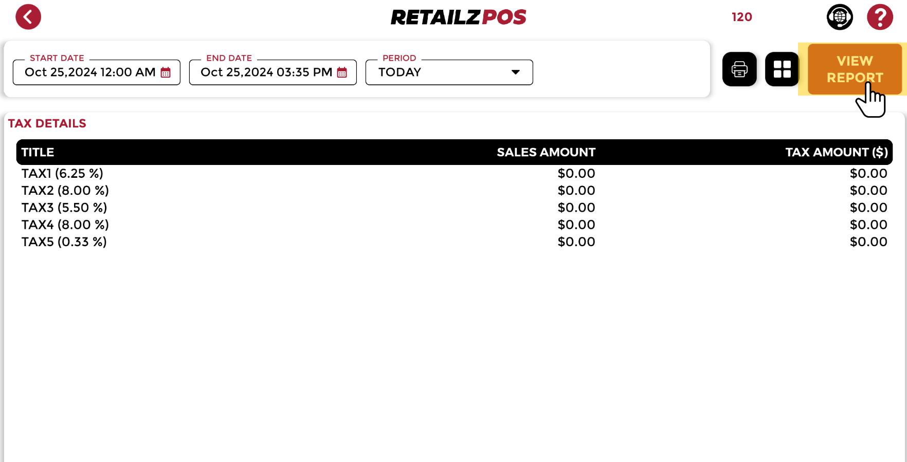 Once you have selected the Date or period, click the View Report button in the upper right corner of the screen to load the data on the screen.